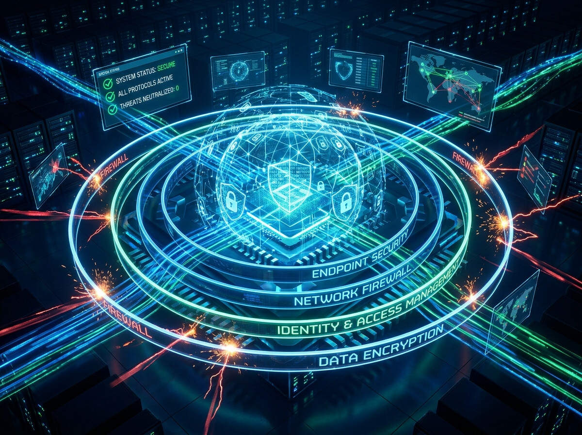 Encrypted database, role access, backup and safe transactions.